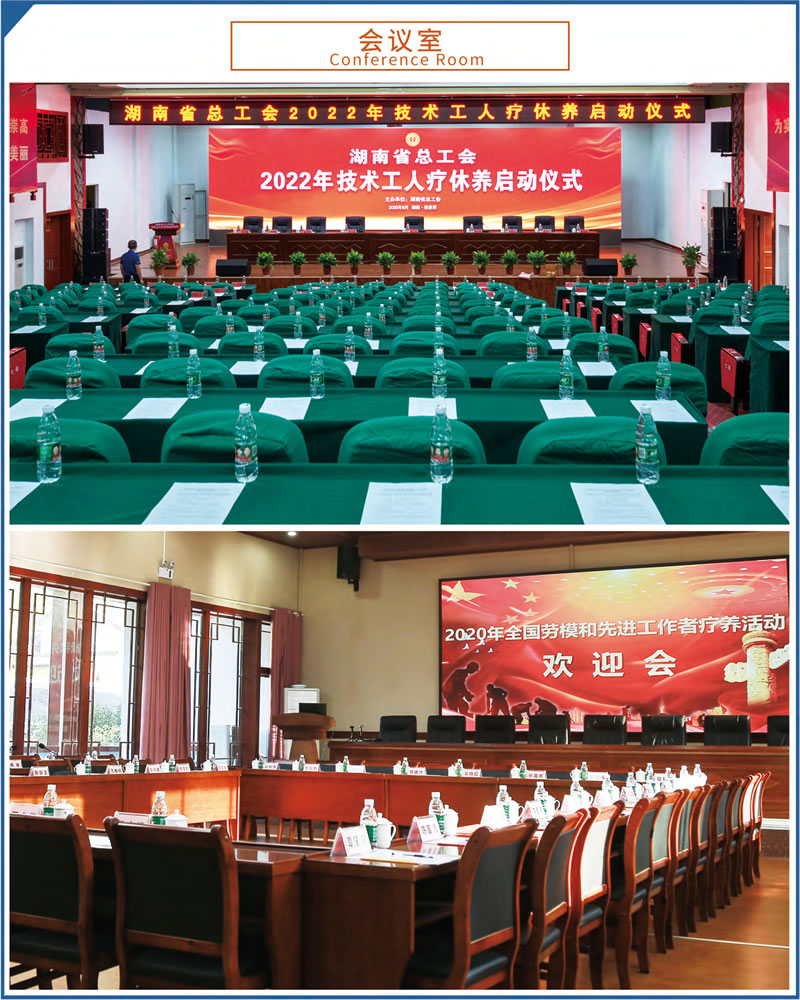 這里設(shè)施完備,環(huán)境優(yōu)美。占地70余畝,建筑面積23000余平方米,由多座湘西民族風(fēng)格的園林建筑群組成。院外依山傍水,院內(nèi)綠樹(shù)成蔭,環(huán)境優(yōu)美怡人,F(xiàn)有客房4棟,各類客房279間,中西餐廳可滿足500人同時(shí)就餐。大小多功能會(huì)議室、棋牌室、健身房、藍(lán)球場(chǎng)、羽毛球場(chǎng)等設(shè)施均有配備。