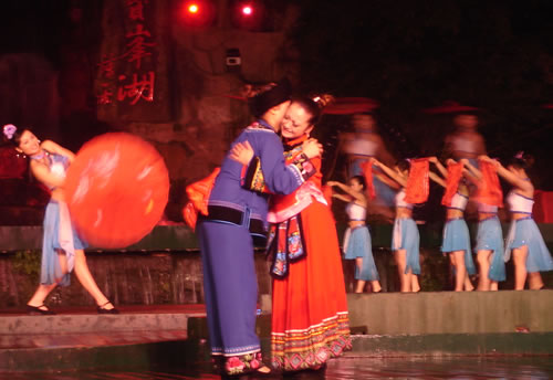 姑娘出嫁,為女人一生中最大的喜事,本應充滿幸福、歡樂的氣氛。然而,舊時湘西、湘南、鄂西、川西(成都等地)、黔東(銅仁、凱里一帶)諸地,卻流行著一種與之完全相反情調的古老婚俗——“哭嫁”。也就是在姑娘“出閣”之前,不但新娘本人哭得很傷心,像淚人一般;而且,新娘的母親、姐妹以及姑媽、姨媽、舅媽及其他交往較多的女友,都要陪著新娘哭。湘西土家族哭嫁的風俗尤為普遍、濃厚,不但哭嫁的時間較長(少則十來天,多達個把月),而且哭嫁歌也保存得古樸、完整。 姑娘出嫁為什么要哭?哪有那么多的東西可哭?這是一種蘊含甚為豐厚的人生禮俗,也是一種饒有興趣的婚俗事象。 俗話悅:“人不傷心不落淚!惫媚锍黾拗砸蓿且驗樵谂f式婚姻制度下,女孩(尤其是勞苦大眾家庭的女孩)總是作為犧牲品“拋”(賣)給夫家的,她們的身心受到極大傷害。因此,湘西等地的女孩在出嫁之前要哭泣,要呼號,哭嫁歌就是感情發(fā)泄的最好表現方式。 哭嫁的源起 哭嫁的風俗,不知道起源于什么時候。戰(zhàn)國時期,趙國的公主嫁到燕國去作王后,她的母親趙太后在臨別時"持其踵,為之泣,祝曰,必勿使返。"大約就是后來長盛不衰的哭嫁風俗的濫觴了。 這種風俗,直至清末還盛行于四川農村中,隨地區(qū)變化而大同小異。解放前,聽老人們說,早些時候,沒有嫁而不哭的人家。如果出現嫁而不哭的姑娘,也會被鄰里看作沒有教養(yǎng)的人,傳為笑柄;相傳有出嫁姑娘不哭而遭母親責打的事,這位母親當然算得上是入流導演了。 舊時宣講故事中,有花轎臨門,父親強令哭《迎風罵媒歌》的情節(jié),可知哭嫁是有歌詞的,帶有表演性質,原是用來渲染氣氛,以悲襯喜;不過,因為婚姻是包辦的,真哭真罵的也不會少。 抗日戰(zhàn)爭后期,風氣較開,哭嫁之風已不盛行,而老人們卻還在津津樂道,哭的方式是,從婚期前一個月的首日起,入黃昏,姑娘訴哭約一個小時,其聲嗚嗚。十天以后,她的母親加入"陪哭";又十天以后,她的祖母加入陪哭。這家沒有諸姑姊妹,人們說,如果有的話,也應當加入陪哭行列的。 哭嫁在川西叫"坐堂"。清代吉道人《味蔗軒隨筆·坐堂詞》云:"婚姻之禮,各省風俗不同。然酌禮準情,各省亦大同小異。凡男家娶婦先賦之詩,謂之'催妝';女家親串頌女之詞,謂之'坐堂'。坐堂者,女當喜期將近之先數夕,其諸姑伯姊,置酒為女祖餞,各述吉祥之詞,以為頌美,女則申己之意以答。女左右更有少女,則隨而嫻習者也。其詞要多鄙俚,然有音韻凄清,風格遒勁,如古歌古謠者。羅江明府蔡,微服巡查鄉(xiāng)里,一日行至某處,值有女子歸,諸娣姒咸以諛詞頌女,女申意以答。忽風吹句入耳,詞曰:'鳳凰落在桌子上,哪個女兒肯離娘'。一字一轉,音韻凄其,誰謂天籟之鳴,不在愚夫愚婦耶!"云云。吉道人姓周名際唐,成都人。吉道人記得明明白白,可惜他只記了一句哭嫁詞,難窺全貌。好在舊時坊間叢刻中有《訓女哭嫁》一種,可見一斑。這本小書的目錄有《閨聲哭》、《娘訓女》、《嫂哭妹》、《哭爹媽》、《哭哥嫂》、《花轎到屋哭》、《哭叔爺》、《哭兄弟》、《哭外公外婆》、《哭舅爺》、《拜香火哭》等等,編次有點凌亂,似乎隨手所記,未經文人之手。遙想《詩》十五國風未刪之時,大約也不過如此吧! 閨聲哭 娘聽后園鳥雀驚,要聽房中女兒聲。 我娘當門苦葛藤,手攀苦葛訴苦情。 我娘苦情苦過了,女兒苦情才起根。 ............ 桔子開花葉子青,陽雀開聲我開聲。 新打銅盆才裝水,新打剪刀兩面青。 娘不開口我開口,娘不開聲我開聲。 當門一根木蓮樹,目連樹上掛卷經。 一本經書背完了,未見我娘來開聲。 虧了我娘睡得穩(wěn),爹媽眼淚貴如金。 哭爹媽 月亮彎彎照華堂,女兒開言叫爹娘。 父母養(yǎng)兒空指望,如似南柯夢一場。 一尺五寸把兒養(yǎng),移干就濕苦非常。 ............ 勞心費力成虛恍,枉自爹娘苦一場。 哭兄弟 黑漆茶盤烏木頭,姐姐離娘弟不留。 留到姐姐吃你飯,留到姐姐穿你衣。 兄弟當家掙家忙,嫁了姐姐買地方。 上頭買齊潼川府,下頭買齊遂寧鄉(xiāng)。 ............ 這個本子所記是川北的歌詞,以前所見的是川南,吉道人所記的是川西,川東,大約也不會大異的。遺憾的是,該書所記哭嫁詞雖有"只怨媒人莫良心"等語,卻沒有列出"罵媒專目,大約是怕媒人太難堪了吧! 其實,罵媒是哭嫁中必不可少的節(jié)目,也是最具反抗色彩的哭嫁歌詞。舊社會,婦女無婚姻自由可言,由于"三從四德"的束縛,平時對于自己的終身大事幾乎不能置一詞,全由媒人和父母擺布;因此,這登花轎之前的"罵媒",便是難得的發(fā)泄機會。這早已反映在戲曲和民間說唱等藝術之中。 以前,川劇《柳蔭記》有《英臺罵媒》一折,英臺罵媒人,言詞激烈,聲色俱厲,充分表現了祝英臺剛烈的性格和反封建精神。她罵道:"提媒婆,更恨她,胡言亂語嘴喳喳......唯愿你,房屋遭火化,田園水推沙。"但這場戲現在卻被刪掉了,五六十年代還有的,全國第一屆戲曲會演的川劇《柳蔭記》也有這一折,是陳書舫演的祝英臺,得了一等獎。現在城里人大約以為媒婆不必罵了,但偏遠地區(qū),媒婆似乎還在肆虐。不過,據說,媒人從來不怕你罵,反倒怕你不罵;你不罵,他的"霉(媒)氣"反而脫不了。這也是風俗民情中的一種幽默吧! 在三峽民間,特別是在巴人(土家族)的生活習俗中,哭嫁無疑是最富特色的一種婚嫁儀式。 新娘從出嫁前半個