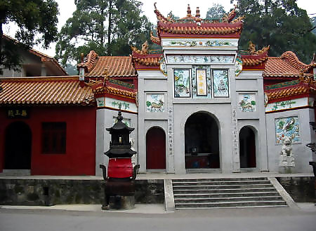 在岳麓山半腰,系晉初古寺,是佛教人湘最早的一所大寺。明神宗時(shí) 更名為萬(wàn)壽寺,民國(guó)初年復(fù)名,古麓山專(zhuān)。唐代大詩(shī)人杜甫曾用“寺門(mén)高開(kāi) 洞庭野,殿腳插入赤沙湖”的詩(shī)句稱(chēng)頌殿字宏大。大雄寶殿等主要建筑,于 1944年被炸毀,僅存山門(mén)和觀(guān)音閣,現(xiàn)已修整一新.山門(mén)上有“古麓出寺” 的橫額,兩旁為“漢魏最初名勝,湖湘第一道場(chǎng)"對(duì)聯(lián),門(mén)外古楓參天,濃 蔭覆蓋,門(mén)內(nèi)園圃百花爭(zhēng)艷。觀(guān)音閣為磚木結(jié)構(gòu),1955年曾加以修葺,1980 年再次修整恢復(fù)原貌,并在廳堂神龕中置觀(guān)音像。閻內(nèi)常舉辦小型書(shū)畫(huà)展 覽。觀(guān)音閣前有兩株羅漢松,左邊一株是六朝遺跡,稱(chēng)“六朝松",樹(shù) 齡在1700年以上, 是岳麓山植物界的"元老", 老干新枝,紛繁翁 郁,彌足珍貴;右邊一株于清代被巨風(fēng)拔去并被清代人補(bǔ)植。兩棵古松 并峙于閣前,游人樹(shù)下經(jīng)過(guò),若入關(guān)隘,故有“關(guān)松"之稱(chēng)。