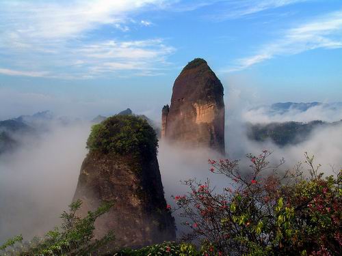 | 莨山,位于湖南省新寧縣境內(nèi)。南與桂林相連,北與張家界呼應,是國內(nèi)最為典型的丹霞地貌風景區(qū),是國家重點風景名勝區(qū),又是國家地質(zhì)公園,總面積108平方公里,轄紫霞峒、 扶夷江、駱駝峰、牛鼻寨、八角寨五大景區(qū),地質(zhì)結構奇特,山、水、林、洞渾然一體。境內(nèi)有形神兼?zhèn)涞膶④娛、惟妙惟肖的駱駝峰、鬼斧神工?天下第一巷"、地造天設的鯨魚鬧海、氣勢磅礴堪稱亞洲第一的天生橋、高聳入云而又十分逼真的辣椒峰,這便是嘆為觀止的莨山六絕,這是大自然對莨山的恩賜,每一絕都舉世無雙。莨山還生長繁衍著銀杉、珙桐、華南虎、云豹、靈貓、大鯢等珍稀動植物,也為莨山的天然景色增添了無限靈動與生氣。這里出土有10萬年前的獼猴頭骨化石,有4500年前的新石器文化遺址,有清化農(nóng)民起義的寨堡,有晚清重臣劉坤一、劉長佑、江忠源的宗祠、墓葬,有異彩紛呈的民族風情,有膾炙人口的華采詩賦,明代縣人陳永猷留下了"夫夷(新寧古稱)勝景天成就,攝杖歸來入夢頻"的美譽,著名詩人艾青留下了"桂林山水甲天下,莨山山水賽桂林"的喟嘆。