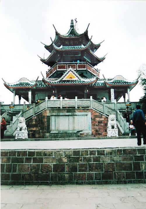 六奇閣是一幢塔狀的樓臺(tái),座落在黃石寨的最高處。它是自然景觀(guān)群體唯一的一處人文景觀(guān),突兀在石砌的方臺(tái)基上。湘潭大學(xué)教授羊春秋老先生于此撰聯(lián)曰:名動(dòng)全球,到此真堪三擊節(jié);勢(shì)拔五岳,歸來(lái)不用再看山。
