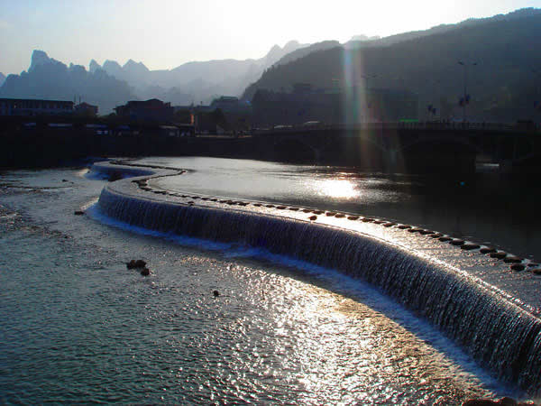 索溪峪的水 索溪峪的景觀,以山水為依托。不僅山奇、水秀,而且橋險、洞幽。有十里畫廊、西海峰林、百丈峽、寶峰湖、黃龍洞、一線天等游覽點(diǎn)300多個。