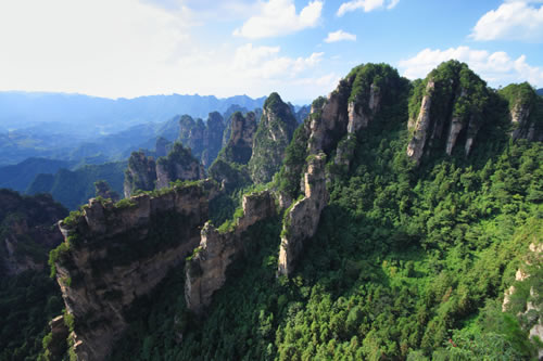 下 午: 中餐后游玩世界自然遺產(chǎn)的核心---袁家界景區(qū)(包含電影《阿凡達》中“哈利路亞山”原型“乾坤柱”、天下第一橋、九天玄梯、乾坤柱、連心橋、中韓友誼亭、神龜問天、迷魂臺等景點) 。袁家界,是張家界森林公園山頂觀景最為奇特壯觀景區(qū)之一,勝于黃石寨和天子山景區(qū)…之后便乘坐大約20分鐘的環(huán)保車可到大觀臺住宿地。