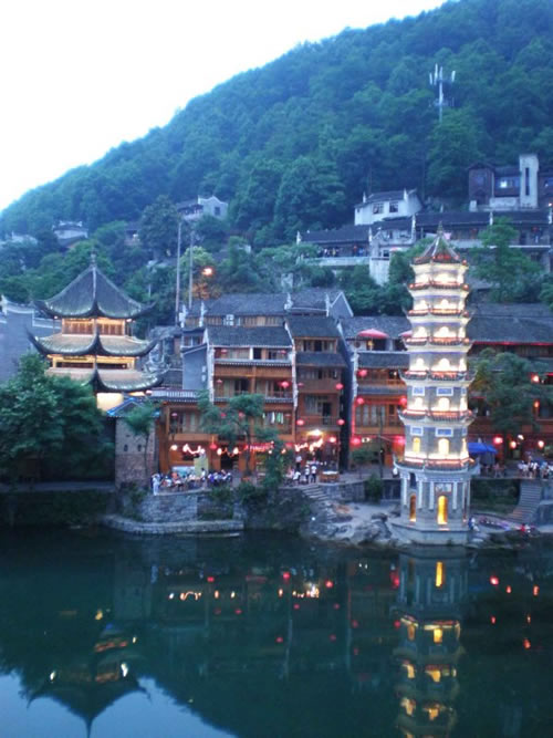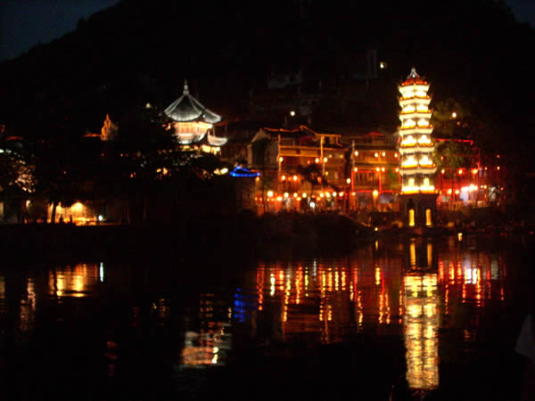 萬名塔夜景 為何要修筑這字紙爐,據(jù)說,乾隆五十年(1876年)古城擴(kuò)建了筆架城以后,形似筆架,故名“筆架城”,有了筆架峰,為培植風(fēng)水,便在沙灣黃土坎江邊修筑字紙爐寶塔一座,象一支筆,與筆架城相對(duì)應(yīng),意欲使鳳凰人文蔚起。