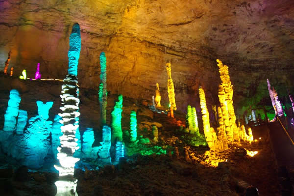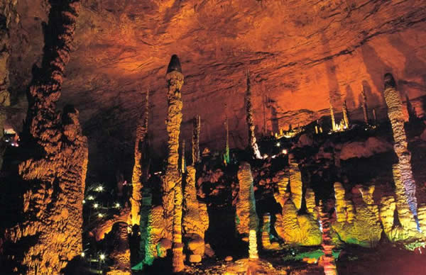 萬畝糧田 黃龍洞位于索溪峪東面,被稱為“地下魔宮”,洞口霧靄迷漫,洞內長廊蜿蜒,鐘乳懸浮,石柱石筍林立,還有石簾、石幔、石花、石琴,琳瑯滿目,異彩紛呈,令人目不暇接!岸赐舛础薄ⅰ皹峭鈽恰、“天外天”、“山外山”,盤根錯節(jié)。黃龍洞內可分四層,水陸并進,從最低陰河至最高穹頂,垂直高度差有100多米,洞內有一個水庫(黃龍水洞)、二條陰河(響水河、水晶河)、三個地下瀑布(黃龍瀑、天水瀑、天地瀑)、四個水潭、十三個廳(宮)(龍舞宮、水晶宮、迷人宮……)、九十六條游廊,長度約達15公里,最大的廳堂有12000平方米,可容納萬人。真可謂是洞中乾坤大,地下有洞天。入黃龍洞,如入人間仙境一般。 |