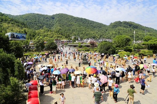 7月29日上午9點(diǎn)30分,由張家界市人民政府主辦,張家界市委宣傳部、市旅游和外事僑務(wù)委員會(huì)、市文體廣電新聞出版局、武陵源區(qū)人民政府承辦,黃龍洞景區(qū)協(xié)辦的“絕版張家界,最炫民族風(fēng)”張家界民俗活動(dòng)月第三場(chǎng)活動(dòng)在黃龍洞景區(qū)啟動(dòng),F(xiàn)場(chǎng)以土家人慶祝豐收的鼓舞拉開(kāi)序幕,土家鼓舞歡悅的節(jié)奏,夸張的舞姿開(kāi)場(chǎng)就吸引了幾千游人和當(dāng)?shù)厝擞^看。草根夫妻檔歌手,張家界“山水組合許勇、舒維亮麗的服飾,野性的嗓音……”以一首《我在高山唱》歌曲,征服現(xiàn)場(chǎng)游客,贏得雷鳴般的叫好聲。